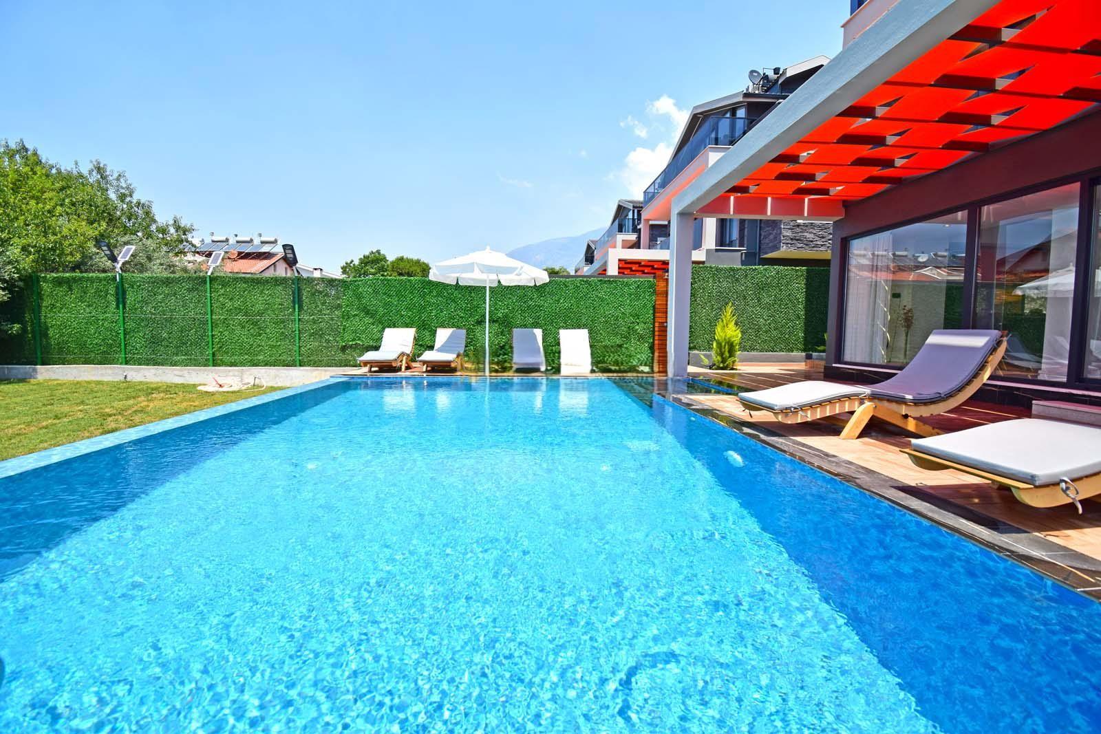 Fethiye'nin Hisarönü bölgesinde bulunan 3 yatak odalı 6 kişi kapasiteye sahip olan, jakuzi, sauna ve hamam gibi özel seçenekleri bulunan lüks tatil villamızdır. Modern iç ve dış mimarisi, özenle dizayn edilmiş ekipmanları ve geniş havuz - bahçe alanı değerli misafirlerimize konforlu bir tatil imkanı sunmaktadır. Ölüdeniz plajına 3 km, Hisarönü merkeze ise sadece 1 km mesafededir. Alışveriş mağazaları, eğlence mekanları ve lunaparkın bulunduğu Hisarönü merkeze yürüme mesafesinde bulunmaktadır. Villamızda ihtiyaç duyabileceğiniz hertürlü araç gereç bulunmaktadır.