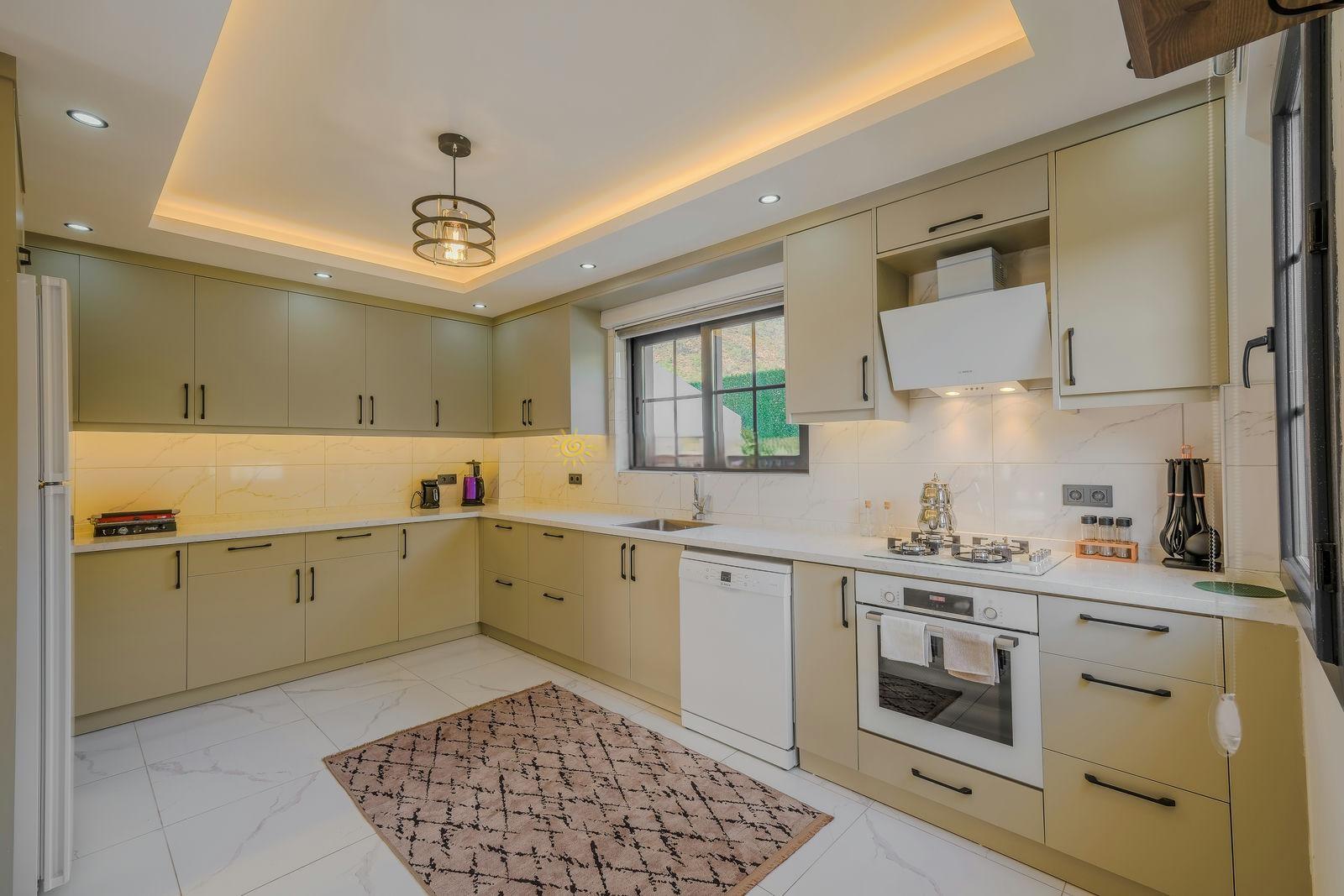 Mutfak: Açık planlı mutfak, 6 kişi ve daha fazla kişiye yetecek kadar mutfak malzemeleri, bulaşık makinesi, çamaşır makinesi, fırın, ocak, buzdolabı, blender, tost makinesi, çaydanlık ve kettle bulunmaktadır.